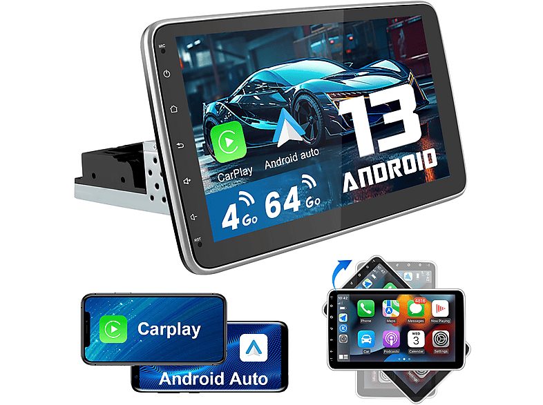 Autorradio - 10'' Pantalla 1 DIN 4+64GB CARPLAY JUNSUN, 10 "", 2*USB, Black