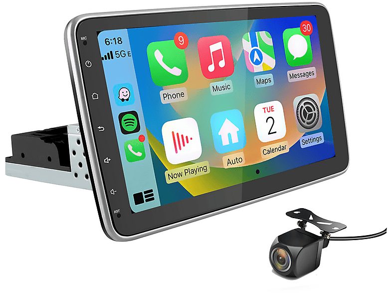 Autorradio - Coche 1 DIN Universal CARPLAY USB 64GB Cám JUNSUN, 10,1 "", 2*USB, Black