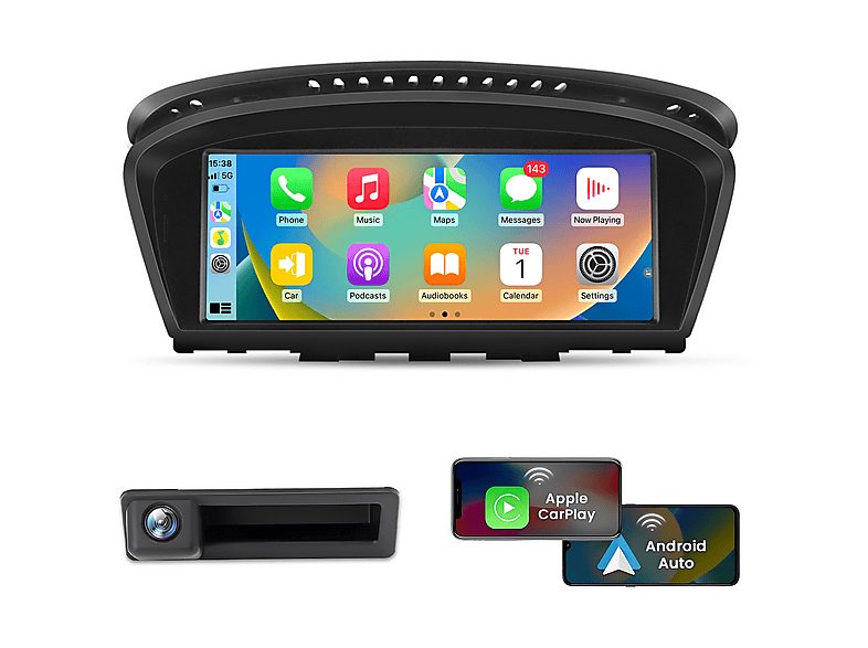 - Autorradio - Para BMW E60 E61 E90 E91 CCC Carplay GPS +cámara JUNSUN, 9 "", 2*USB, black
