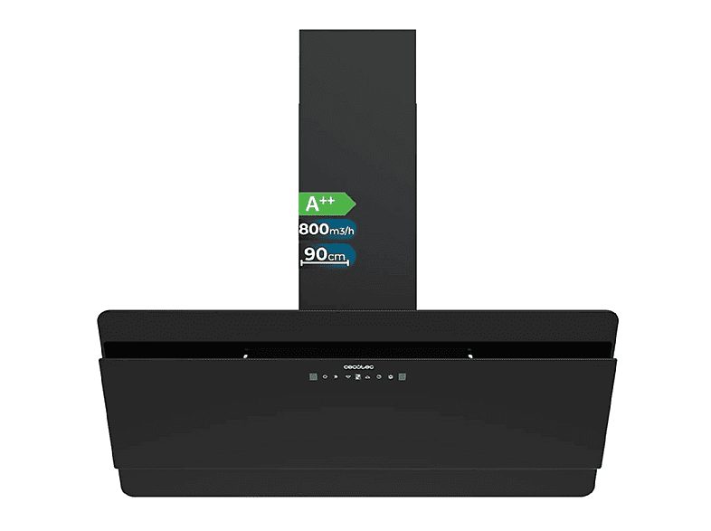 Campana convencional - CECOTEC Bolero Flux DT 908000 Glass Black A++, 90 cm, Multicolor