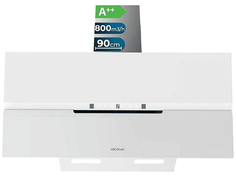 Campana convencional - CECOTEC Bolero Flux DT 908010 Glass White A++, 89,4 cm, Multicolor