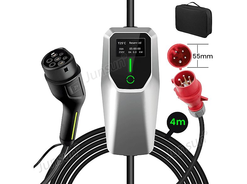 Cargadores vehículos eléctricos | JUNSUN 11kW 4m [6-16A, 3-Fases] Model Y/3, Black Cargadores vehículo eléctrico al mejor precio solo en Tien24