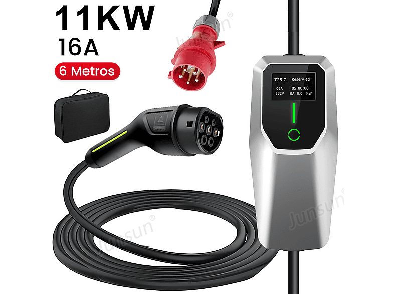 Cargadores vehículos eléctricos | JUNSUN 11KW 6M Tipo 2 6A-16A, IP67, plateado, plateado Cargadores vehículo eléctrico al mejor precio solo en Tien24