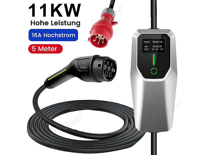 Cargadores vehículos eléctricos - JUNSUN 11Kw Tipo 2 6A - 16A, Black