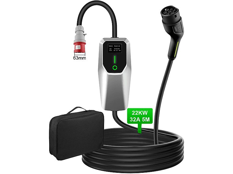 Cargadores vehiculos eléctricos | JUNSUN 22kW 5m [ 6-32A, 3-Fases], Negro Cargadores vehículo eléctrico al mejor precio solo en Tien24