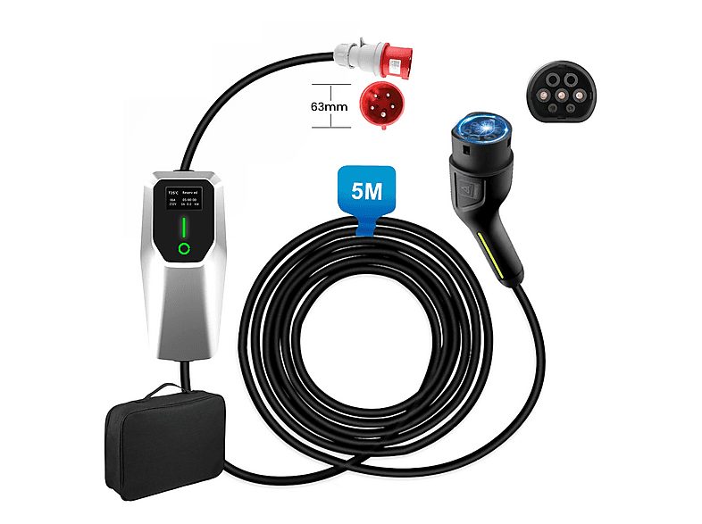 Cargadores vehículos eléctricos - JUNSUN 5M 22KW Tipo 2 6A-32A, Black