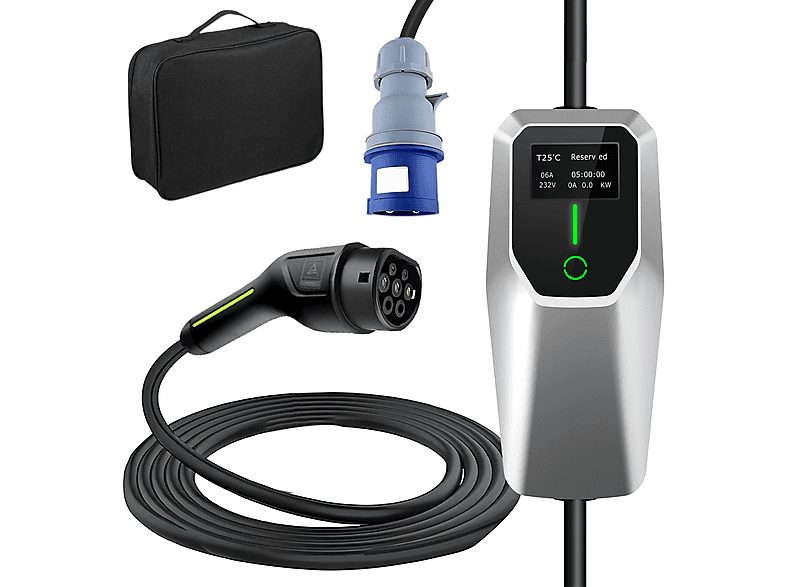 Cargadores vehículos eléctricos - JUNSUN Tipo 2 Portátil de 7.2KW, Black