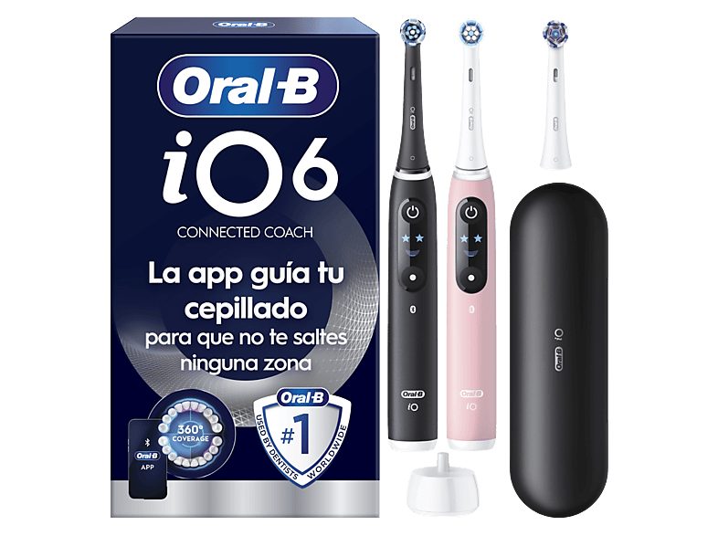 Cepillo eléctrico | Oral-B iO 6s, Pack doble, 5 modos, Seguimiento con app, Pantalla interactiva, Sensor de presión, Estuche de viaje, Negro y rosa Cepillos de dientes al mejor precio solo en Tien24
