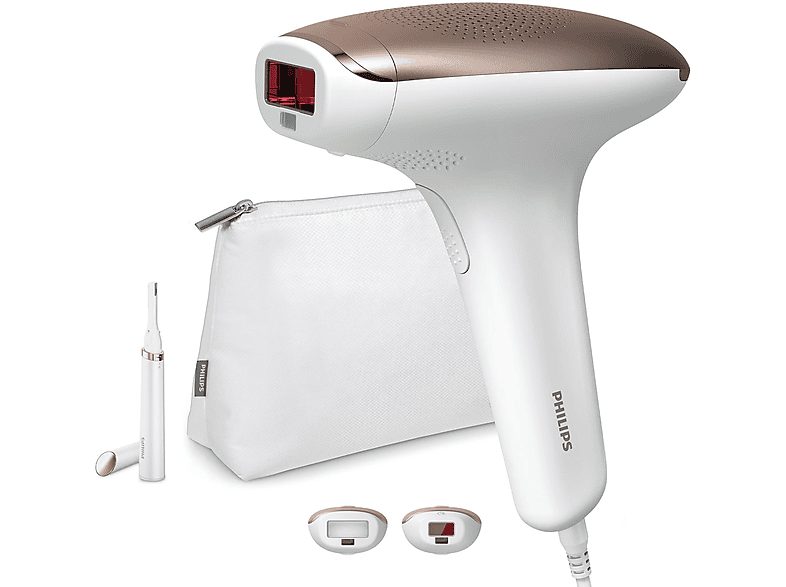 • Contenido de la caja : Depiladora IPL Philips, Accesorio para el cuerpo (4 cm2): Para uso en zonas del cuerpo por debajo del cuello Accesorio facial (2 cm2): Para uso en zonas por debajo de los ojos