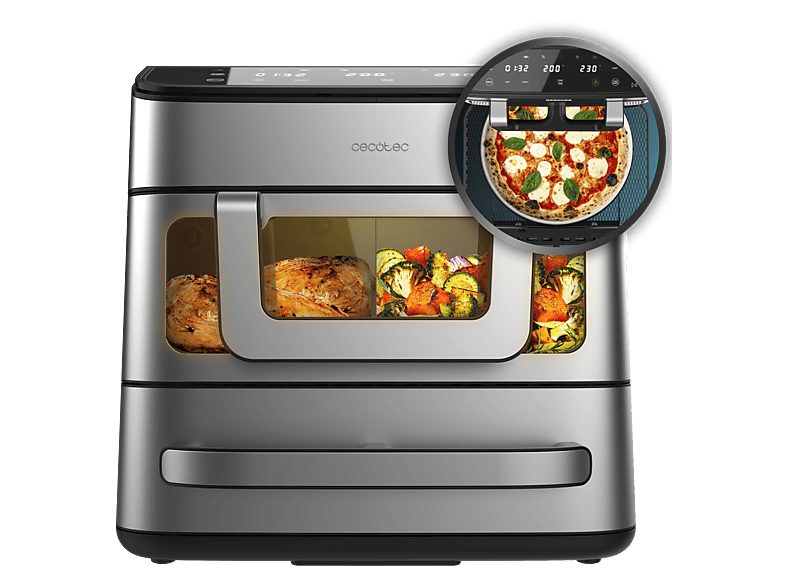 Freidora de aire - Cecotec Cecofry FoodCourt 18000 4Pizza, 2 en 1, Capacidad 18 L, Piedra para pizza, 2700 W, Horno 230 ºC, Freidora 200 ºC, Gris