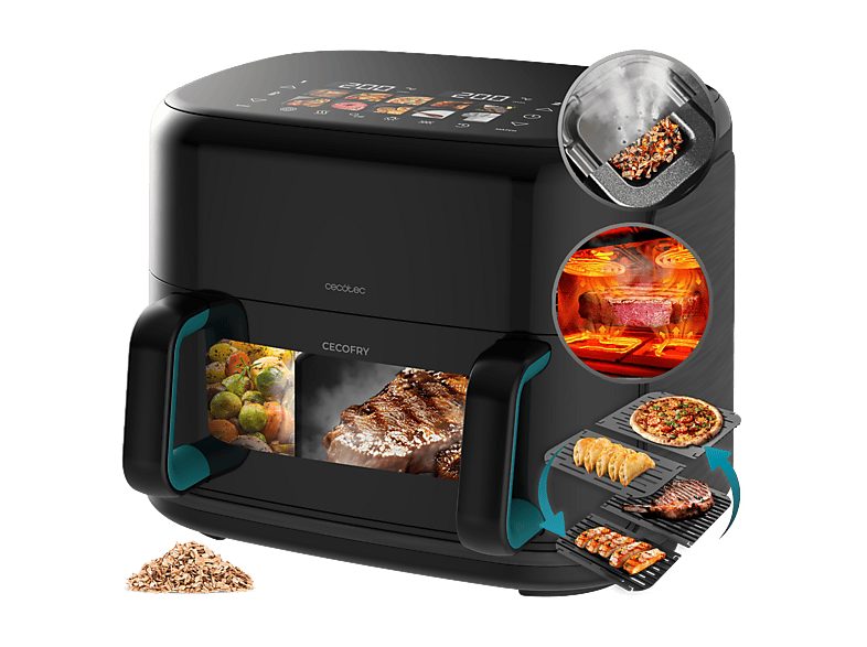Freidora de aire - Cecotec Cecofry&Grill Smokin’Prime 11000, 2800 W, Funcion ahumador, Doble Cesta, 11 L, Funcion grill, Negro