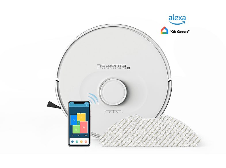 - Robot aspirador - ROWENTA RR8567, 8567 W, Potencia de succión 2700 kPa, Depósito 0,3 l, Autonomía 120 min, Blanco